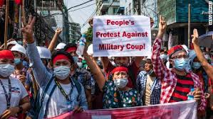 மியான்மர் நாட்டில் ஆங்சான்சூயி கட்சியின் ஆட்சி நடந்து வந்தது. கடந்த பிப்ரவரி மாதம் அந்த அரசை கவிழ்த்து விட்டு ராணுவம் ஆட்சியை கைப்பற்றியது.இதற்கு பொதுமக்கள் இடையே கடும் எதிர்ப்பு கிளம்பியது. ராணுவ ஆட்சிக்கு எதிராக போராட்டத்தில் ஈடுபட்டனர். அவர்களை ராணுவத்தினர் கண்மூடித்தனமாக தாக்கினார்கள். துப்பாக்கிசூடு சம்பவங்களும் நடந்தன. இதில் நூற்றுக் கணக்கானோர் பலியானார்கள்.